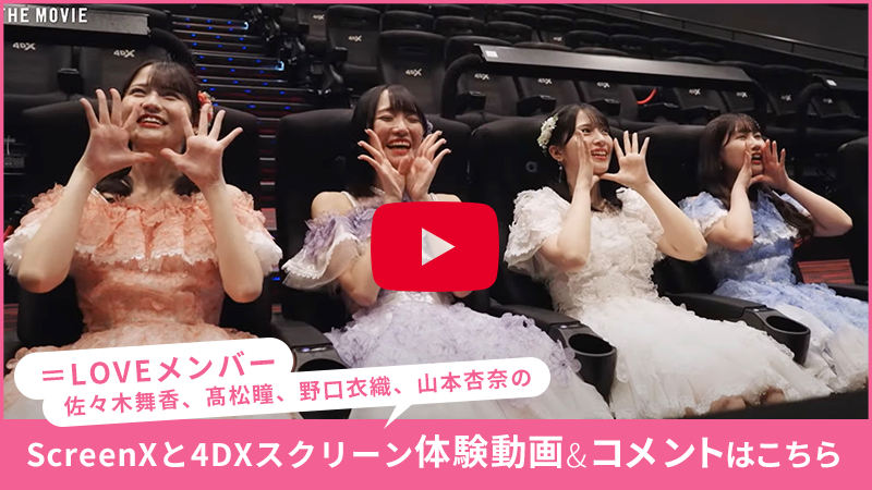 上映形態は4種類。通常の2D上映に加え、正面スクリーンと2つの側面スクリーンの計3面で構成され圧倒的な臨場感を提供するScreenX、ライブパフォーマンスと音楽に合わせてシートが動くモーション効果を搭載した4DX、そしてScreenXと4DXの機能をすべて搭載した4DX